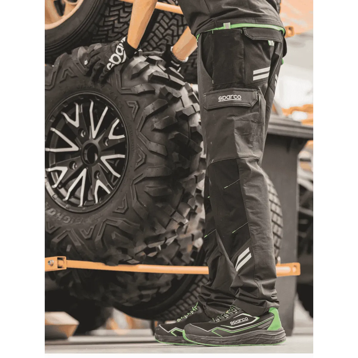 Il design sportivo nero/arancio, tipico dello stile Sparco, si abbina a materiali tecnici ad alte prestazioni, ideali per ambienti professionali dinamici.