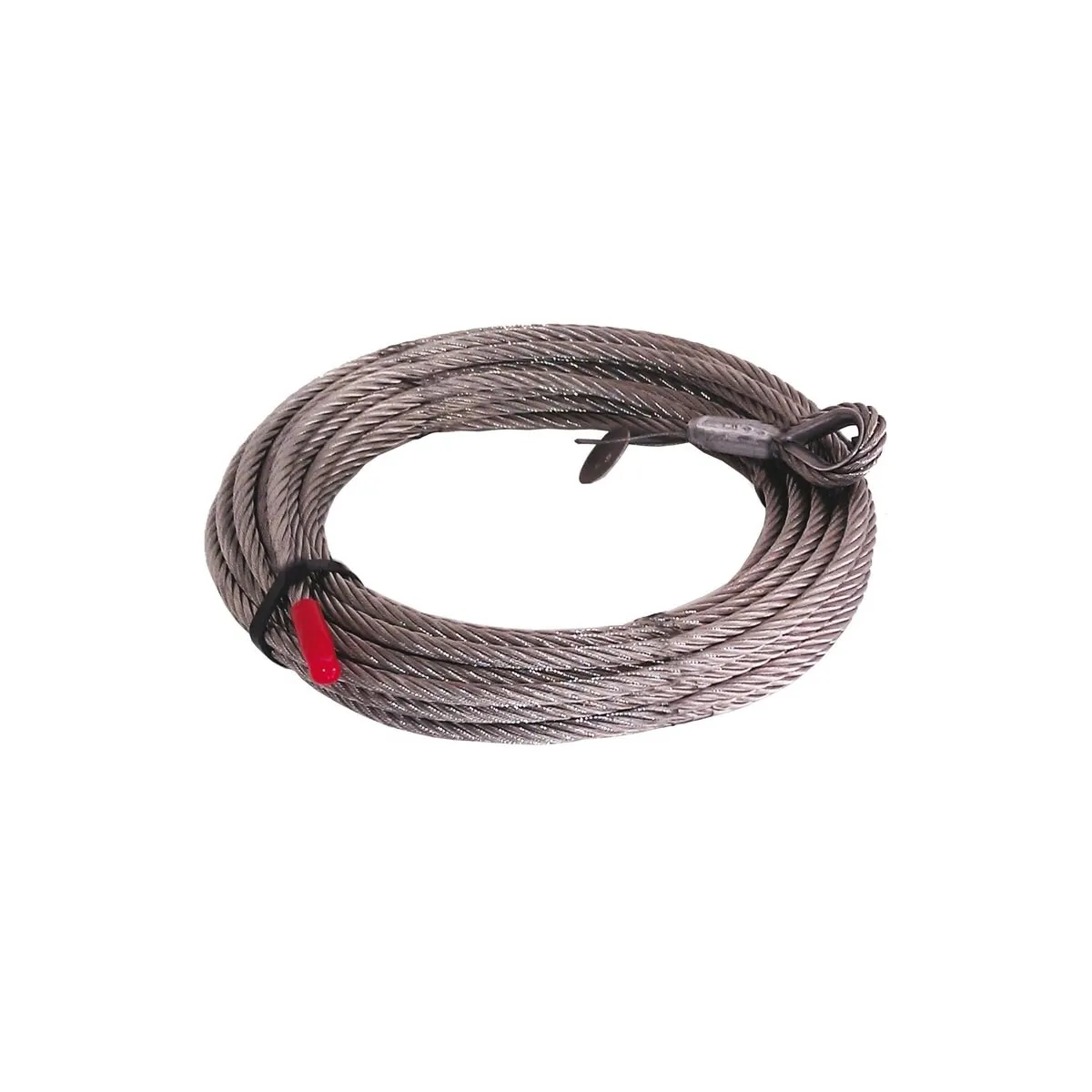 Fornita ad una estremità di occhiello chiuso con redance, manicotto in alluminio tronco conico e targhetta in alluminio con indicazione lotto di produzione.