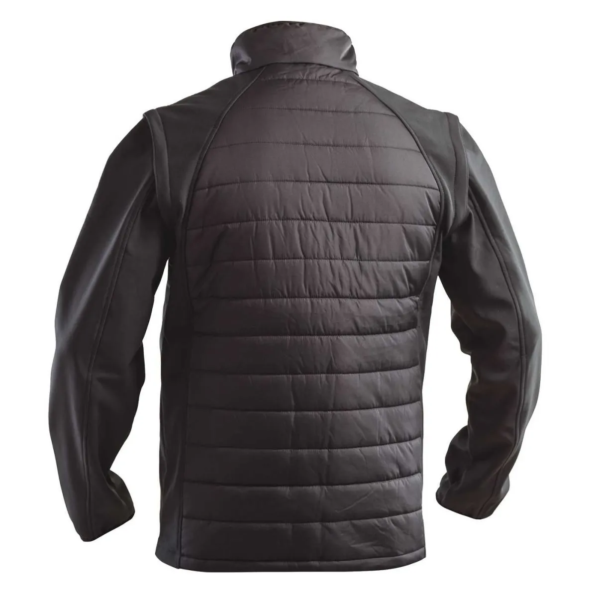 Giacca SLIDE modello con maniche staccabili, zip lunga, 2 tasche laterali ed 1 tasca al petto Colori disponibili: nero/nero con zip ed interno collo arancio Taglie: dalla S alla 3XL Tessuto: softshell e 150D poliestere mechanical stretch