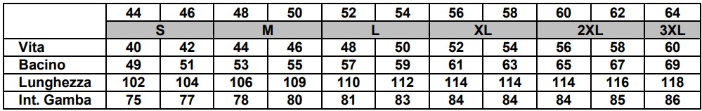 Tessuto: 98% cotone, 2% fibra antistatica, peso 340 gr/mq garzato internamente chiusura patta con bottoni coperti, 2 tasche anteriori a filetto, tascone laterale e portametro, tasca posteriore applicata chiusa con pattina e velcro, rinforzo interno al cavallo, doppie cuciture nei punti di maggiore sforzo Taglie disponibili: dalla S alla XXXL Colore disponibile: blu