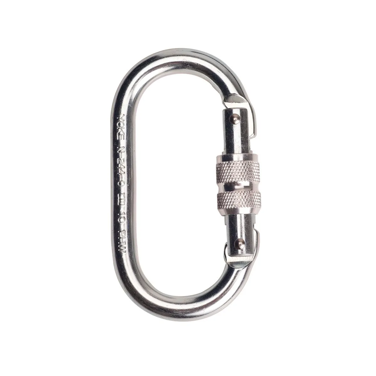 Moschettone ovale in acciaio con chiusura a vite, lunghezza: 106mm, apertura: 19mm. Carico di rottura: 25kN Certificato CE