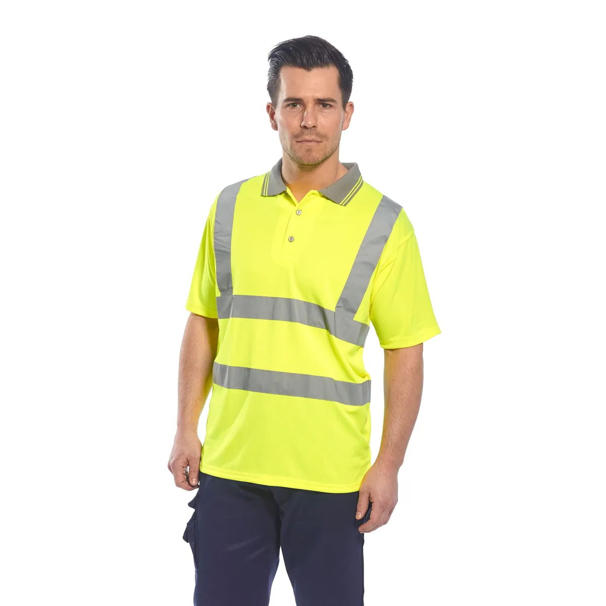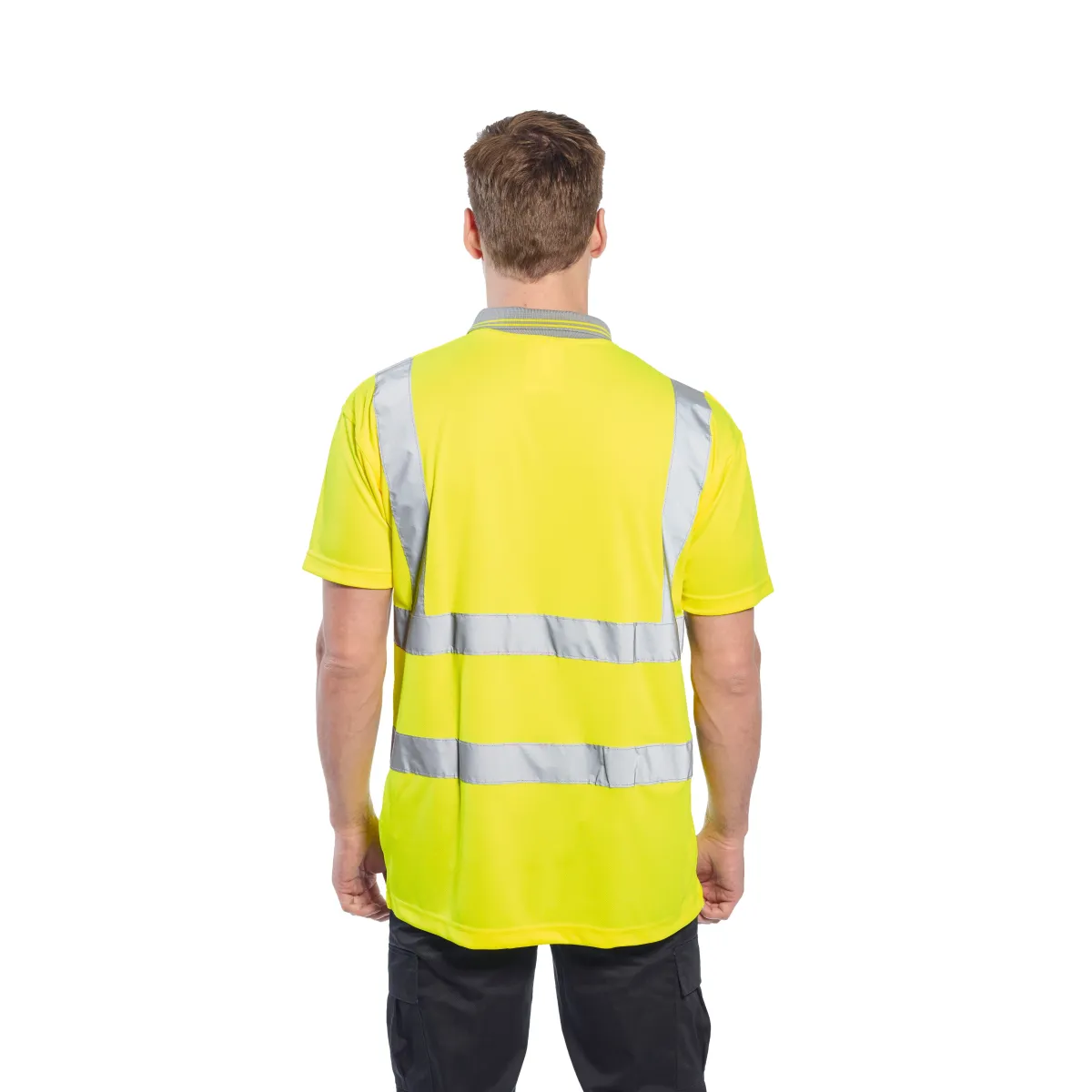 Polo in tessuto traspirante, colletto in contrasto e bande rifrangenti. Resistente e duratura adatta per lavori estivi su strada e autostrada.