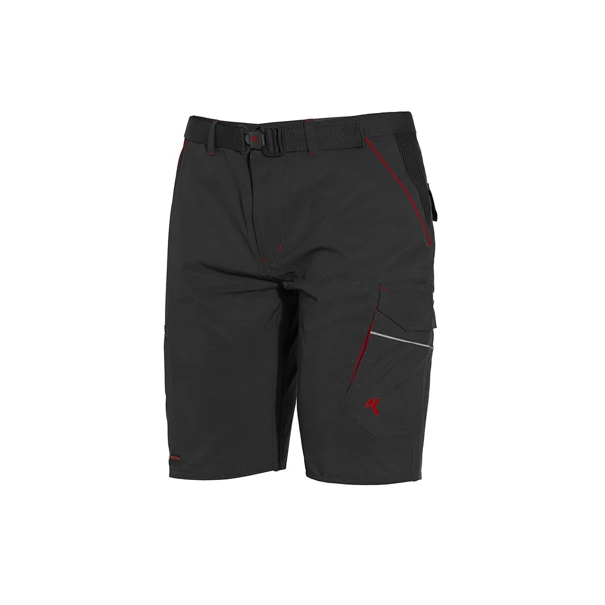 Questo bermuda da lavoro firmato Issa Line, è estivo, in tessuto stretch, leggero e traspirante, dotato di porta cellulare, tasca porta metro, due tasche posteriori ed un tascone laterale. Inoltre possiede due inserti laterali in tessuto elasticizzato aumentano il comfort in vita mentre gli inserti alta visibilità offrono un minimo di visibilità notturna, viene fornito con cintura regolabile.